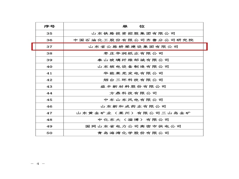 近日,山东省总工会办公室公布2025年“鲁新杯”山东省全员创新竞赛全员创新企业赛道省级决赛结果,山东省公路桥梁建设集团有限公司获评“山东省全员创新企业”称号。