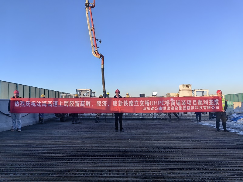 沈海高速是国家高速公路网的重要组成部分,更是唯一纵贯中国东南沿海的交通大动脉。本次完成铺装的立交桥全长245米,桥面宽度19.5米,铺装总面积达4777.5平方米。面对冬季施工中低温与大风的双重挑战,项目团队精准施策,通过前期实验数据科学推演混凝土性能,创新采用“海绵、篷布、棉被”三重保温水养方案,有力保障了UHPC在恶劣气候下的施工质量。相关技术的成功应用不仅为后续UHPC桥面铺装提供了技术储备,也为青岛及周边区域的“一小时经济圈”提供了更坚实的交通支撑。