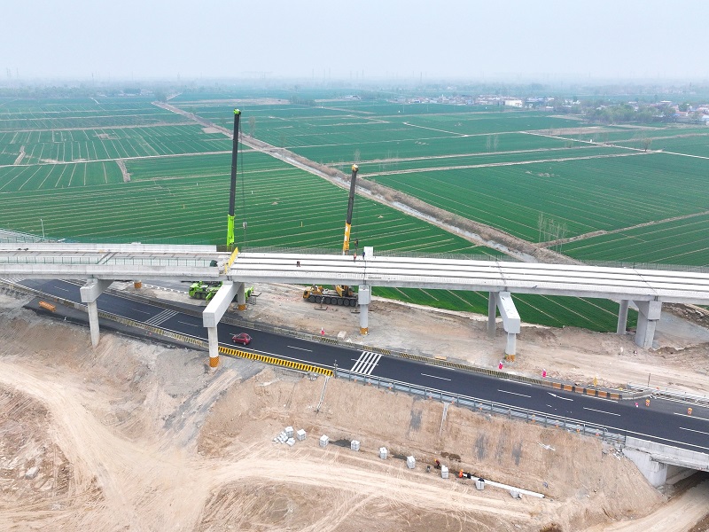 宁津项目共有预制梁1531片,其中预制T梁901片、预制箱梁630片;钢箱梁2686吨,断面形式为单箱双室钢箱梁、双箱单室钢箱梁。为确保梁板架设工作顺利推进,项目部统筹部署、周密安排,努力克服运输路线狭长、施工作业空间狭隘、安全管控形势严峻等不利因素。围绕支架安装、梁体运输、架设焊接及安全防护措施对现场作业人员进行详细技术交底和安全培训教育。技术人员在梁板架设过程中实施全程动态监测,保障各工种配合有序、各环节衔接顺畅。面对涉路、涉河施工等复杂工况,项目部编制专项施工方案,强化安全与质量双重管控,为梁板架设任务的圆满完成提供了有力保障。