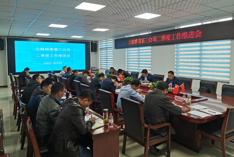 2021年5月4日下午,公路桥梁第三公司第二季度工作推进会议在临临二标项目召开。会议深入贯彻落实了董事长办公会暨第一季度生产经营会议精神,全面总结现有工程项目建设情况,安排部署下一步工作,进一步推进工程施工进度,确保公司年度任务完成。