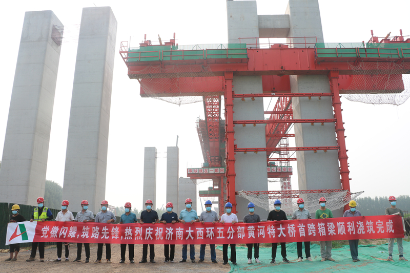 8月9日,公路桥梁第一公司大西环项目黄河特大桥首跨现浇箱梁顺利浇筑完成,揭开了黄河特大桥上部结构施工的序幕。